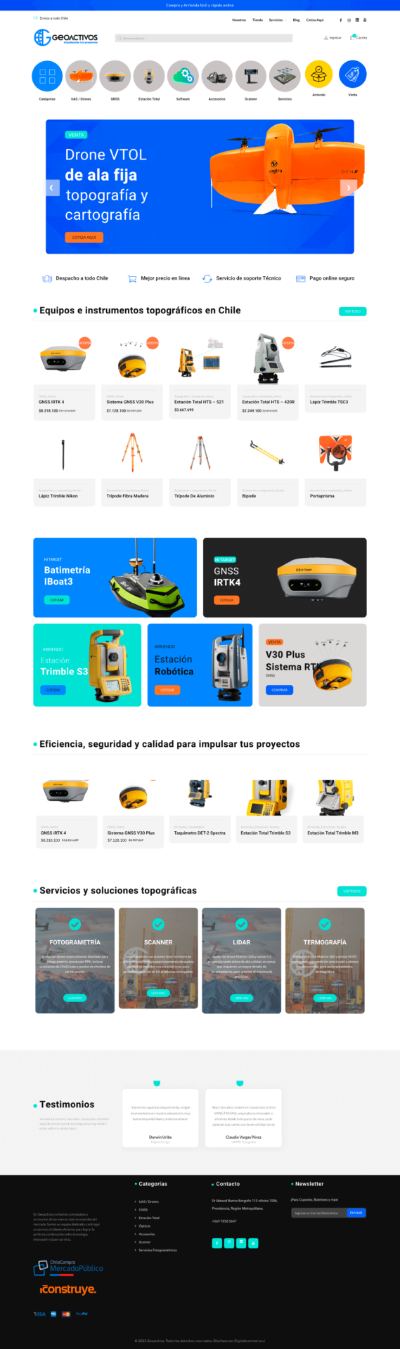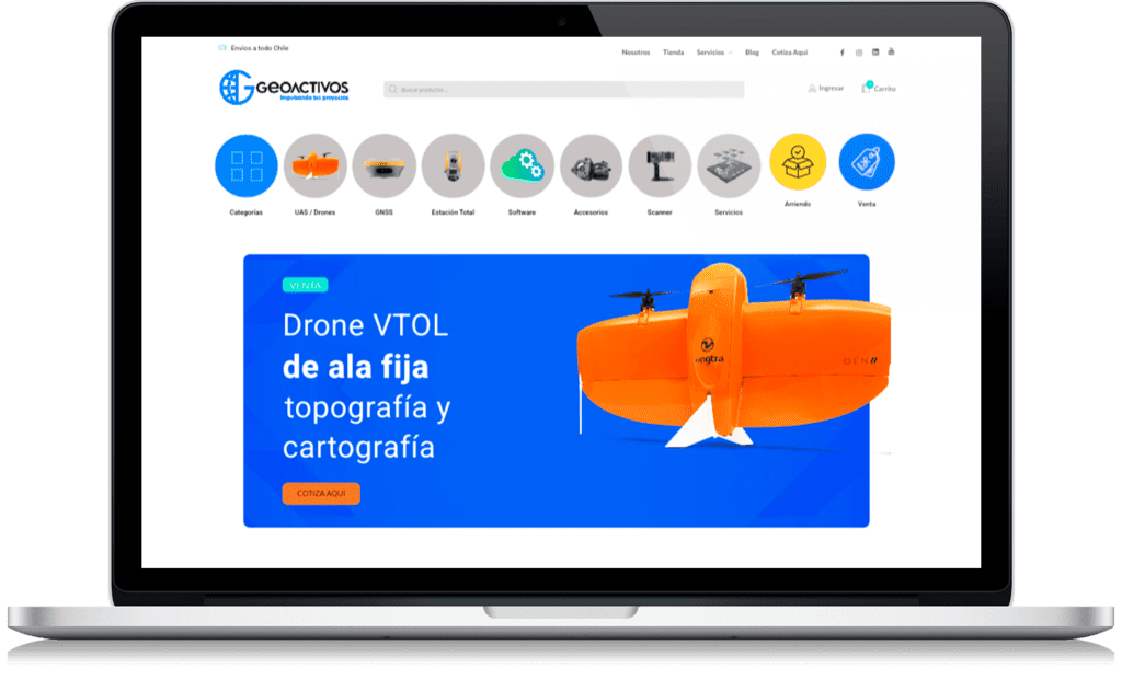 Nuestro cliente necesitaba transmitir una nueva imagen sin perder la esencia de sus inicios. Geoactivos es una empresa dedicada al rubro de la topografía y geodesia, cuya propuesta de valor inicial fue ser ágil en la venta y arriendo de maquinaria de construcción y minería, ha ido evolucionando hacia un modelo de servicios, a través de la investigación e implementación de tecnologías innovadoras en su rubro.